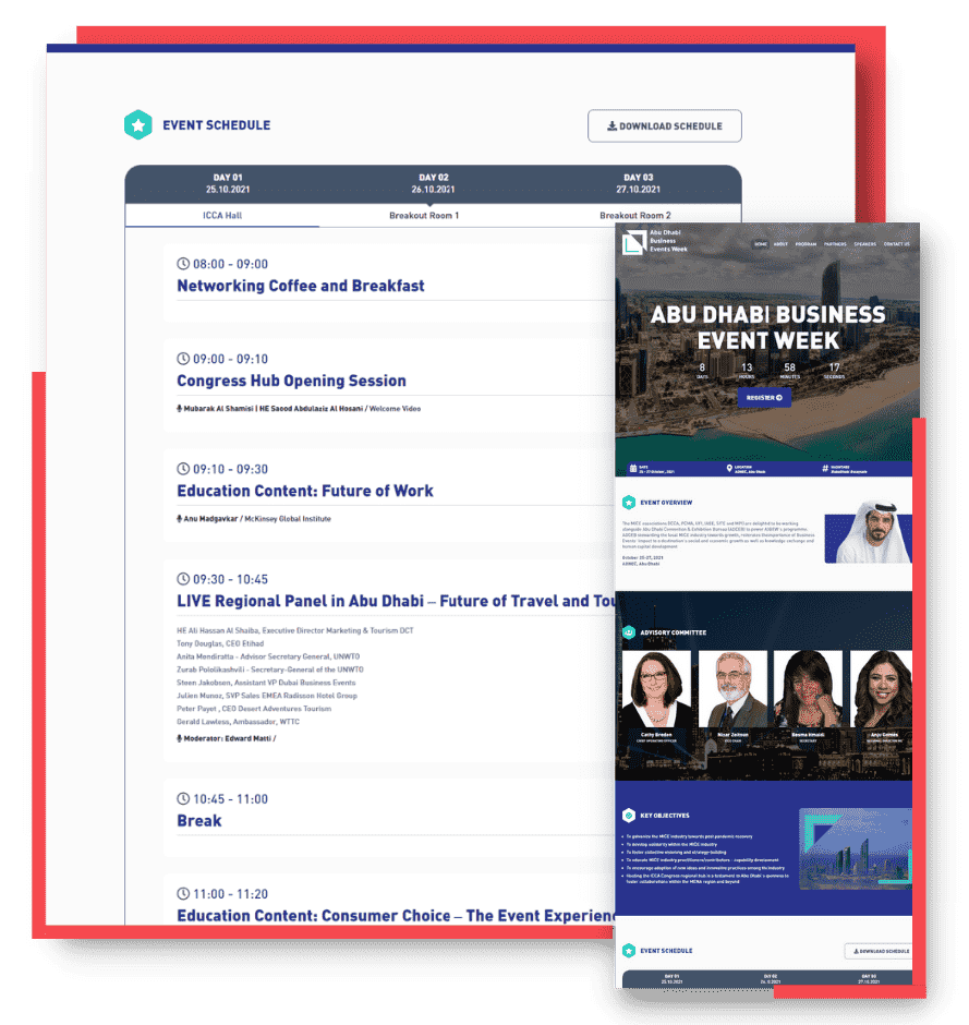 This challenge called for setting up a dedicated team that provides digital consultancy and support for each event managed by Event and Conference Planner, in their own UAE timings. Since the events industry is highly short on turnover time, websites and web apps had to be built with agile methodology so that parallel teams can reduce overall development time. To increase reachability, all their websites had to be designed with responsive first approach and hosted with diligence to keep the live events running smooth. We came up with: